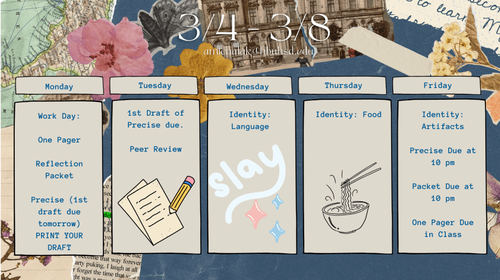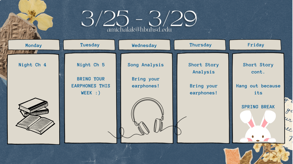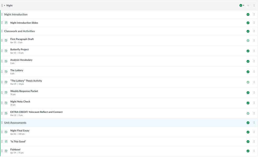 Week at a Glance Examples (These are on the class Canvas homepage)